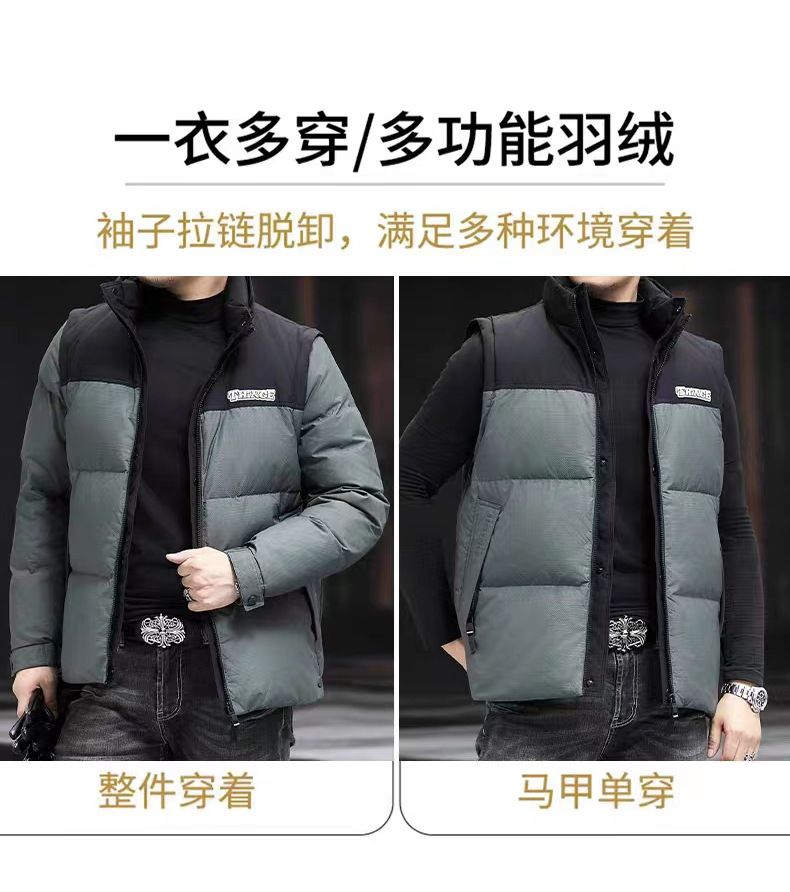秋冬季新款男士立领加厚羽绒服 男款 鸭绒 可脱卸袖 可当马甲面包服